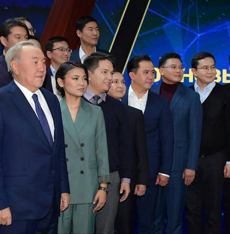 Рис. 1. Назгуль Кенжетай и другие лауреаты конкурса "100 новых лиц Казахстана" на встрече с Нурсултаном Назарбаевым