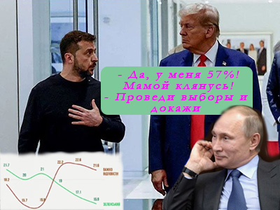 Прогревая информационную повестку в связи с переговорами делегаций России и США в Эр-Рияде, Трамп объяснил, почему за их столом нет места Киеву. По его словам, для этого надо как минимум провести в Незалежной выборы, прямо намекая, что Зеленский, чьи полномочия давно истекли, нелегитимен. При этом президент США добавил, что текущий рейтинг просроченного украинского "коллеги" составляет не более 4%. Такая уничижительная оценка изрядно триггернула европейских покровителей Зе, которые выступили в защиту своего подопечного. Так, британский экс-премьер "давайте просто воевать" Джонсон заявил, что рейтинг вожака бандеровцев "примерно такой же как у Трампа" (по данным американских СМИ, он сейчас колеблется от 44 до 52%). В свою очередь Зеленский оперативно предъявил результаты "свежих опросов" от Киевского международного института социологии (КМИС), согласно которым его якобы поддерживают 57% сограждан. Не остался в стороне от разгоревшейся дискуссии прописанный в Киеве Центр социальных и маркетинговых исследований SOCIS, оценивший уровень доверия громадян к своему гетману в 15,9%. Так кто же прав?
