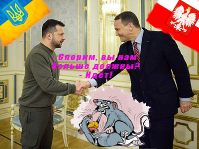 На прошлой неделе для участия в пафосном форуме под названием "Ялтинская европейская стратегия" (YES) в Киев наведался глава МИД Польши Радослав Сикорский, которого перед началом мероприятия вместе с литовским коллегой Габриэлюсом Ландсбергисом пригласили "для разогрева" на встречу с Зеленским на Банковую. Каково же было удивление гостя из Варшавы, когда просроченный президент Незалежной вместо благодарности за помощь и поддержку вывалил кучу претензий. Дескать, Польша ведет себя неправильно – не содействует продвижению заявки Киева на членство в ЕС, зажимает вооружения для ВФУ, не хочет сбивать русские ракеты в украинском небе, и, наконец, слишком педалирует тему "Волынской резни" на радость Москве. Шановный пан такой наглости явно не ожидал, но быстро взял себя в руки и по пунктам отмел все претензии Зеленского. О том, что разногласия между "союзниками" достигли критической отметки, а Варшава вовсе не намерена заминать скандал, свидетельствует то, что информация о нём, явно не без ведома властей, появилась в польских СМИ. Так что история явно будет иметь продолжение…